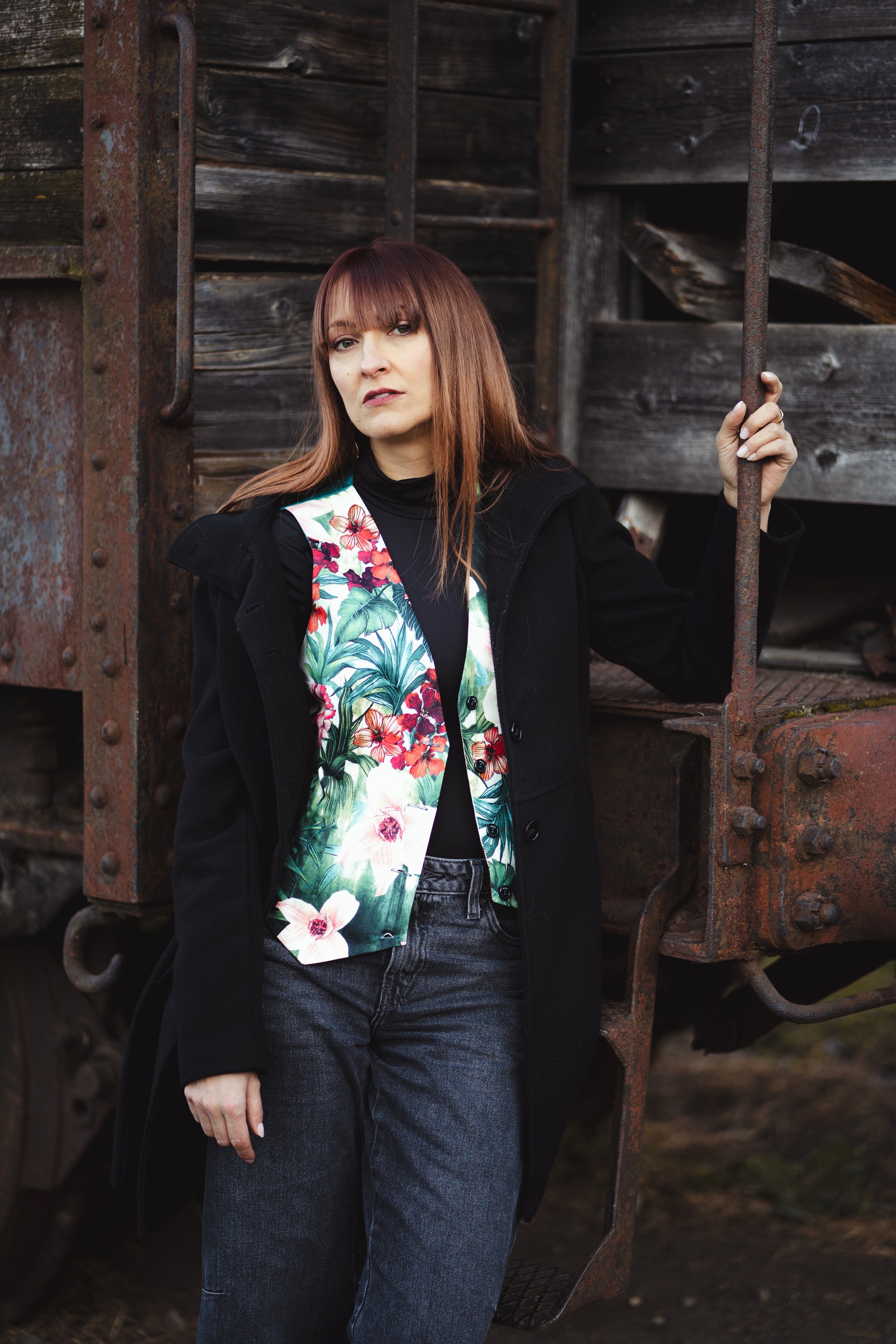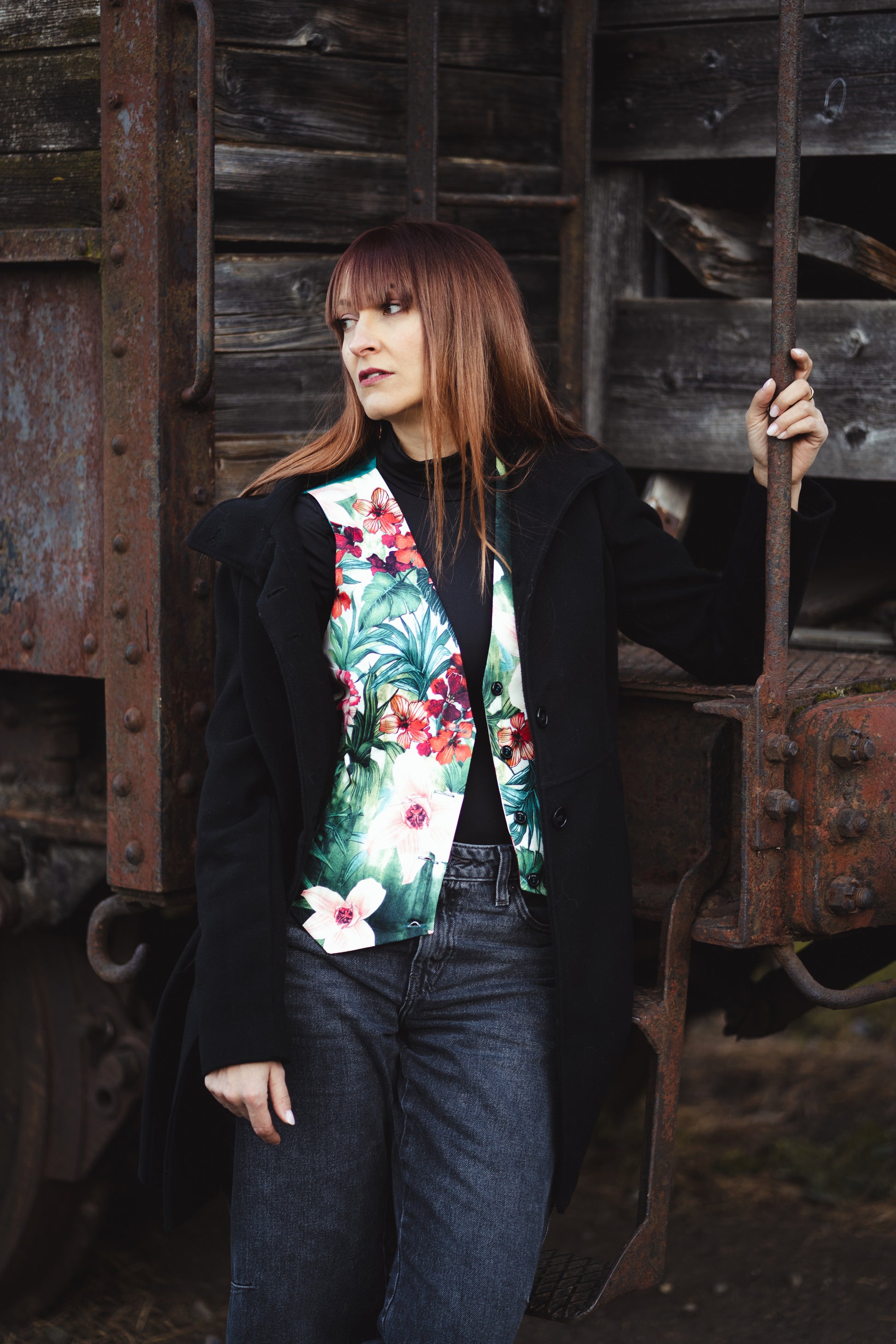 I gilet della collezione Flowers, sono realizzati in collaborazione con OMBRADIFOGLIA, e combinano tessuti di alta qualità con motivi floreali e geometrici.